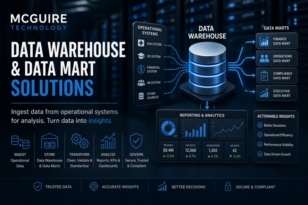 At McGuire Technology, we design and implement data platforms that bring your data together in a structured, reliable, and usable way.